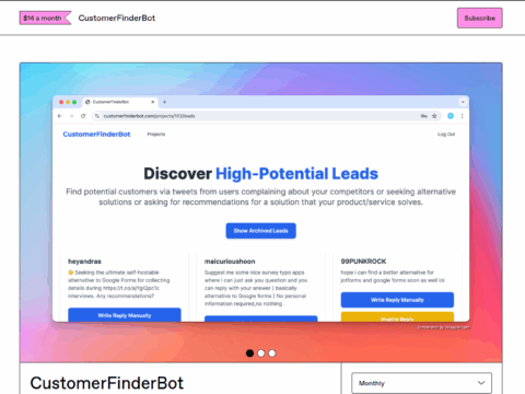 CustomerFinderBot is a cutting-edge AI agent that revolutionizes lead generation by intelligently scanning X (formerly Twitter) and Reddit to identify high-potential customers primed for your product or service. By leveraging advanced natural language processing and machine learning algorithms, our bot analyzes millions of social media posts in real-time, pinpointing users who express needs, pain points, or interests aligned with your offerings. This powerful tool not only saves you countless hours of manual prospecting but also significantly boosts your sales potential by connecting you with leads at the perfect moment in their buyer’s journey.
