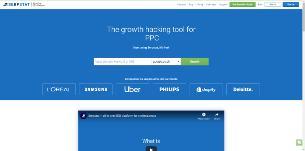 Serpstat is great for big businesses. It includes a very professional platform to work from, where you can create professional- looking infographics for clients.