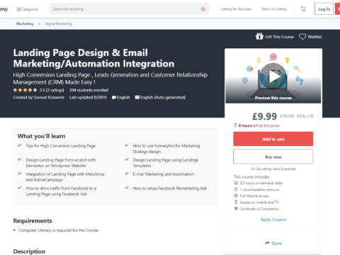 In the first section, you will be taught how to map and analyse a marketing strategy/funnel for your business . A sample business will be used as a case study. In the second section, you will explore Tips on how to design a high conversion landing Page. You will learn how to design Landing Page using templates on Landingi in Section 3 while the following section will simplify how you can integrate your Landingi page with Active-campaign, An E-mail Marketing and Automation Platform.