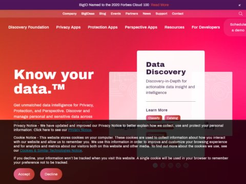 Actionable Data Intelligence Modern Data Visibility & Control     Find, classify, and catalog all sensitive data - everywhere. Data Discovery Data Classification Catalog File Analysis Asset Inventory Metadata Management Graph Technology Operationalize end-to-end ...
