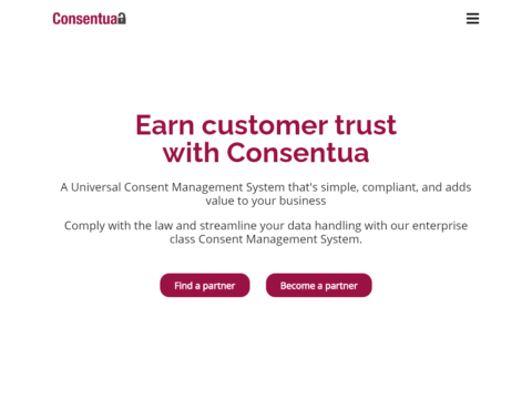 Earn customer trust with Consentua A Universal Consent Management System that's simple, compliant, and adds value to your business Comply with the law and streamline your data handling with our enterprise class Consent Management System. Find a partner Become a partner Go beyond what's...