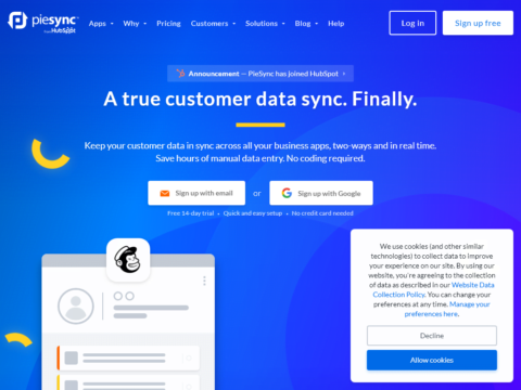 PieSync Help Center Explore our help center for quick answers Search help articles… Getting started The essentials of setting up a two-way or one-way sync between your app...