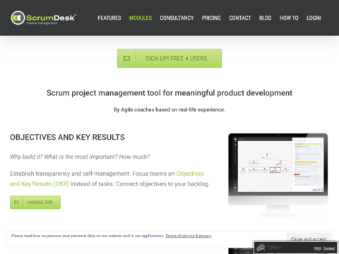 Scrum project management tool for meaningful product development By Agile coaches based on real-life experience. OBJECTIVES AND KEY RESULTS Why build it? What is the most important? How much? Establish transparency and self-management. Focus teams on Objectives and Key Results...