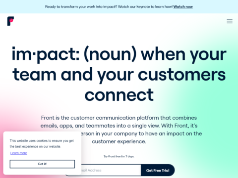 im·pact: (noun) when your team and your customers connect Front is the customer communication platform that combines emails, apps, and teammates into a single view. With Front, it's simple for every person in your company to have an impact on the customer experience. CUSTOMER EXPERIENCE ...