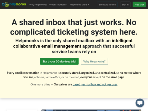 A shared inbox that just works. No complicated ticketing system here. Helpmonks is the only shared mailbox with an intelligent collaborative email management approach that successful service teams rely on What can Helpmonks do for you? Helpmonks is a shared mailbox software that empowers...