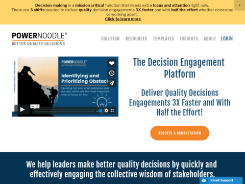 Helping leaders engage their stakeholders and make quality decisions Cloud software to engage busy subject matter experts and overcome the cognitive biases and dysfunctional behaviours that get in the way of making quality decisions. Deliver engagements 3X faster with half the effort...