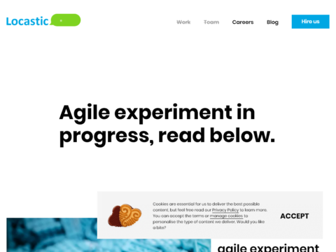 Locastic is a company specialized in developing web and mobile apps, consulting and training, in the market since 2011. Agile experiment in progress, read below. Locastic web: an agile experiment In order to spice things up, we decided to launch our site in a truly agile and incremental ma...