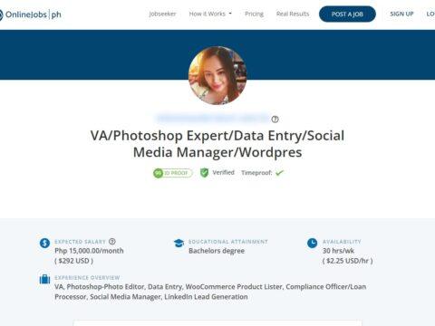 VA, Photoshop-Photo Editor, Data Entry, WooCommerce Product Lister, Compliance Officer/Loan Processor, Social Media Manager, LinkedIn Lead Generation Working online job and to be hired is ONE of the greatest dream I've ever wanted. So I have the courage to work hard with the ability to carry o...