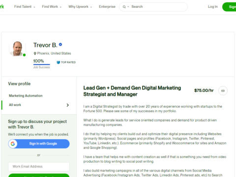 Free 30-Minute Exceptionally Helpful Consultations (Not selfish sales calls) Free Upwork Profile Audits Just invite me to your job! I help freelancers and agencies like you earn more leads and maximize your earnings using Upwork, all while working on things you actually care about. We coul...
