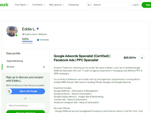Hi there! Thanks for checking out my profile. My name is Eddie Li and I am a Certified Google AdWords Specialist with over 7+ years of agency experience in managing cost-effective PPC & SEM campaigns. I'm currently a freelancer work mostly with my local agencies. Experienced in running ads...