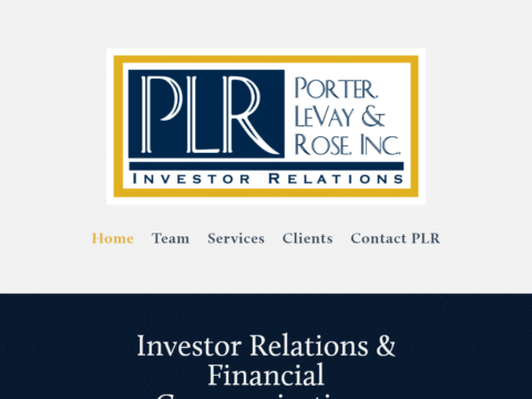 Investor Relations & Financial Communications Experts Advocating for high growth companies and entrepreneurs since 1971 Headquartered in the heart of New York City, Porter, LeVay & Rose, Inc. represents both public and private companies in enhancing their communications and positionin...