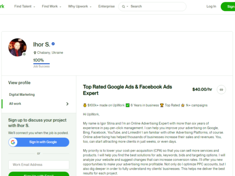 Hi UpWork, My name is Igor Stina and I'm a Google AdWords certified professional, with more than six years of experience in pay-per-click management. I can help you improve your advertising on Google, Bing, Facebook, and LinkedIn! Pay-per-click advertising has helped thousands of businesses in...