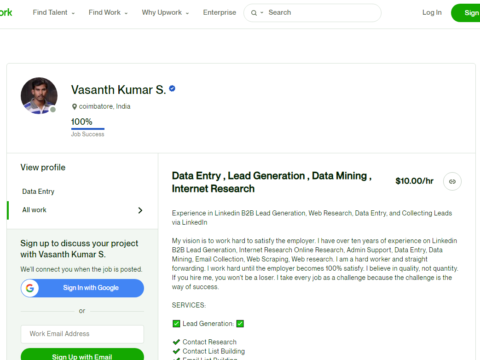 I am Vasanth Kumar, a Top Rated Expert in Web Research, Lead Generation, Email List Building & Data Mining bringing over 8 years of experience to the table. My vision is ...