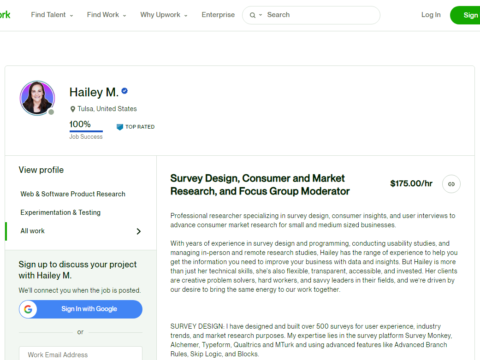 Survey Design: I have designed and built over 300 surveys for user experience, industry trends, and market research purposes. My expertise lies in the survey platform Survey Mon...