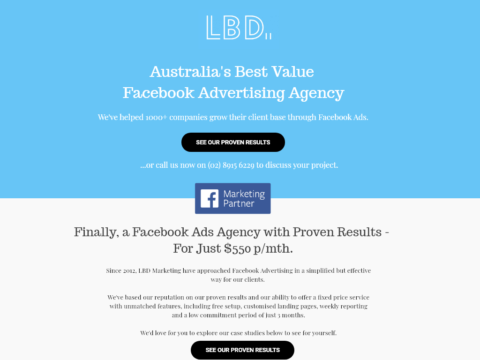 Since 2012, LBD Marketing have approached Facebook Advertising in a simplified but effective way for our clients. We’ve based our reputation on our proven results and our ability to offer a fixed price service with unmatched features, including free setup, customised landing pages, weekly repo...