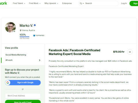 Probably the only consultant on this platform who has managed over $26 million in Facebook ads. Facebook-Certificated Marketing Expert. "I highly recommend Marko. He has helped us double to triple our ROI on Facebook Advertising. He is willing to work with you hand and hand to create amazin...