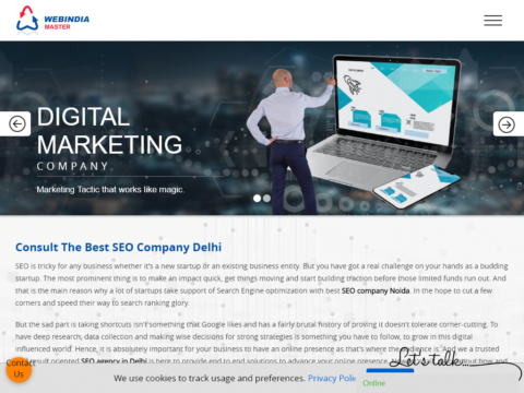 Webindia Master is a leading digital marketing company based in India with other branches based in Seminary, USA. We develop customized strategies for all of our customers as we believe that growth and profitable business is the main motive of all businesses. Our team involves people who have a good understanding of technology. Our aim is to provide satisfactory results to all the customers and helps to make a successful business. Our services are:- • Search Engine Optimization • Social Media Optimization • Local SEO • Ecommerce SEO • Web Design & Development • Mobile Application Development • Pay Per Click & More