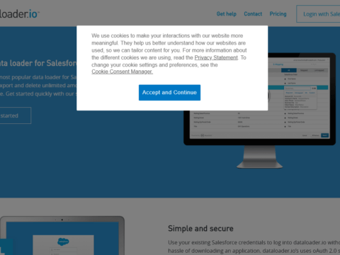 The data loader for Salesforce Use the most popular data loader for Salesforce to quickly and securely import, export and delete unlimited amounts of data for your enterprise. Get started quickly with our simple, 100% cloud solution. Get started Simple and secure Use your existing Salesfo...