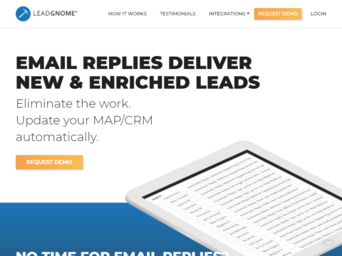 EMAIL REPLIES DELIVER NEW & ENRICHED LEADS Eliminate the work. Update your MAP/CRM automatically. REQUEST DEMO LeadGnome: Intelligent email reply management for B2B, reply email mining NO TIME FOR EMAIL REPLIES? Marketing doesn’t have time to monitor its shared inboxes. Sales does...