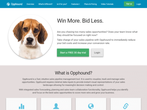 What is Opphound? Opphound is a fast, intuitive sales pipeline management tool. It is used to visualize, track and manage sales opportunities. Opphound requires minimal data inputs to provide instant visual representations of your sales landscape allowing for meaningful decision making and contr...