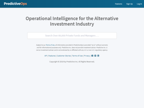Operational Intelligence for the Alternative Investment Industry Search Over 89,000 Private Funds and Managers . . . Subject to our Terms of Use, all information provided in PredictiveOps is provided "as-is" without warranty and for informational purposes only. Predictive Inc. does not provide ...