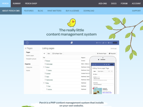 Perch is a PHP content management system that installs on your own website. Perch is supported and regularly updated, and used by thousands of happy customers around the worl...