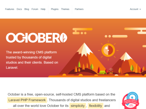 October CMS The award-winning CMS platform trusted by thousands of digital studios and their clients. Based on Laravel. October is a free, open-source, self-hosted CMS platf...