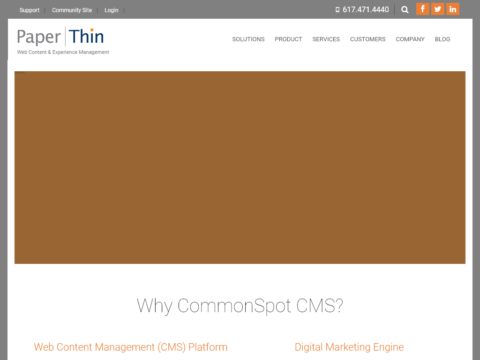 aperThin, Inc. is a privately held, MA-based company. Our flagship product CommonSpot™ helps organizations create world-class Web experiences. PaperThin's customers span multiple industries, including: government, healthcare, higher education, and association/non-profit sectors. PaperThin, Inc...