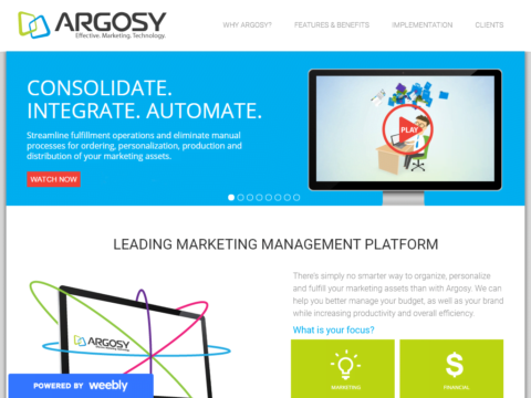 LEADING MARKETING MANAGEMENT PLATFORM Picture There’s simply no smarter way to organize, personalize and fulfill your marketing assets than with Argosy. We can help you better manage your budget, as well as your brand while increasing productivity and overall efficiency. ARGOSY MODULES We...