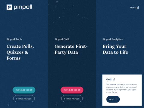 Pinpoll Tools Create Polls, Quizzes & Forms EXPLORE MORE SHOW PRICES white arrow to downwards Pinpoll DMP Generate First-Party Data EXPLORE MORE SHOW PRICES white a...
