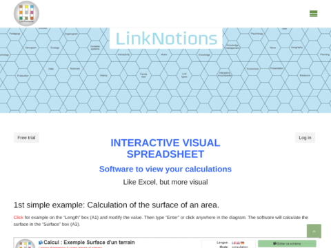 INTERACTIVE VISUAL SPREADSHEET Software to view your calculations Like Excel, but more visual 1st simple example: Calculation of the surface of an area. Click for example on...