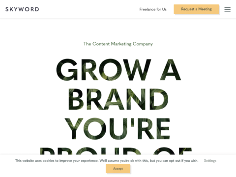 GROW A BRAND YOU'RE PROUD OF. WE BELIEVE: AUTHENTIC MARKETING IS NOT AN OXYMORON. When you meet people's needs for information with original, expert content, both you and your audience win. We’ve got the results to prove it. Skyword Makes It Easy To Market Like You Mean It Our solut...