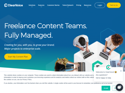 Freelance Content Teams. Fully Managed. Creating for you, with you, to grow your brand. Major projects to enterprise scale. Start My Content Plan Teamlance Into the Future of Content Marketing With ClearVoice, you can entrust your content creation to networked teams of freelancers manag...