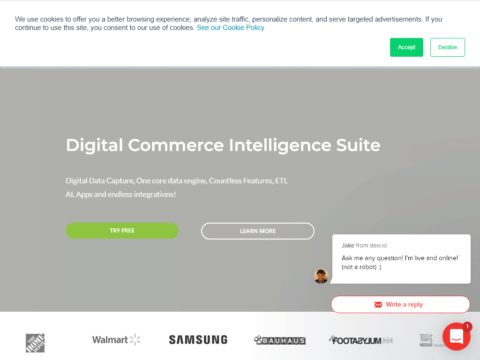 Digital Commerce Intelligence Suite Digital Data Capture, One core data engine, Countless Features, ETL AI, Apps and endless integrations! All the features you can dream ...