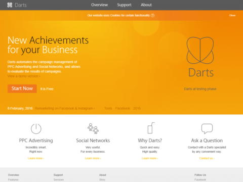 New Achievements for your Business Darts automates the campaign management of PPC Advertising and Social Networks, and allows to evaluate the results of campaigns. View a demo version › PPC Advertising Incredibly smart. Right now. Learn more › Social Networks Very useful. For ever...