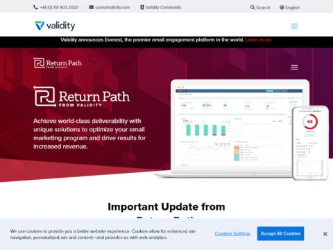 Generate more revenue and increase the lifetime value of your database. Important Update from Return Path Return Path was acquired by Validity in 2019, but the platform is n...