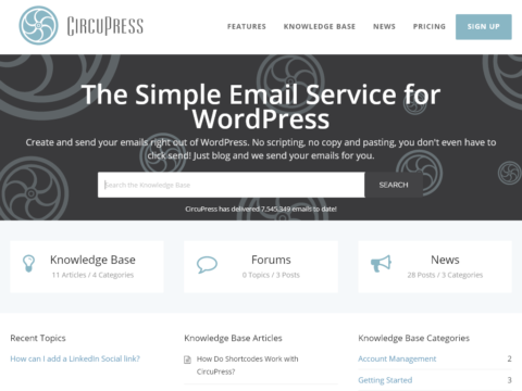 The Simple Email Service for WordPress Create and send your emails right out of WordPress. No scripting, no copy and pasting, you don't even have to click send! Just blog and we send your emails for you. Search For Search the Knowledge Base SEARCH CircuPress has delivered 19,184,777 emails t...