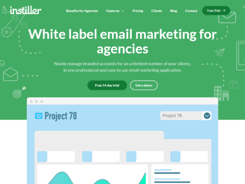 White label email marketing for agencies Neatly manage branded accounts for an unlimited number of your clients, in one professional and easy to use email marketing application. Set the branding of Instiller to match your agency 100% white label Set the branding of Instiller to match your ...