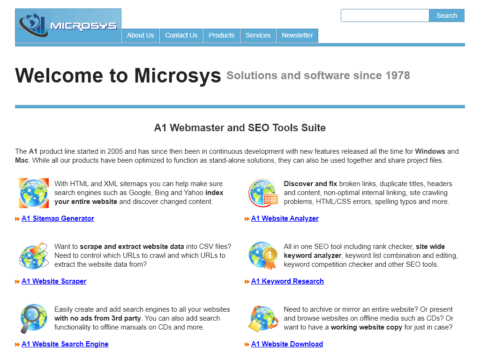 A1 Webmaster and SEO Tools Suite The A1 product line started in 2005 and has since then been in continuous development with new features released all the time for Windows and Mac. While all our products have been optimized to function as stand-alone solutions, they can also be used together and ...