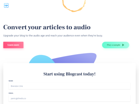 Blogcast generates audio versions of your articles, then gives you the raw audio and a simple embed. Then, you can add it to your blog, create a fully-automated podcast, or use it in any other way you can think of. The posibilities are endless!