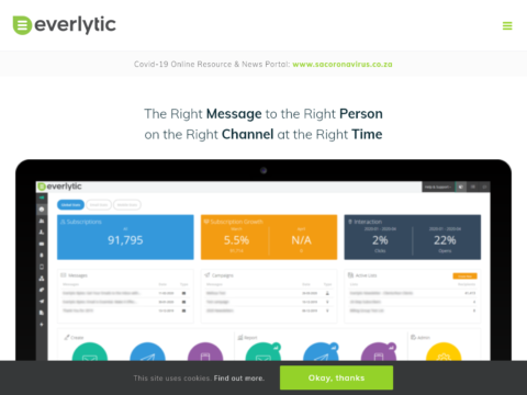 Everlytic supports bulk email, SMS, voice broadcasting,