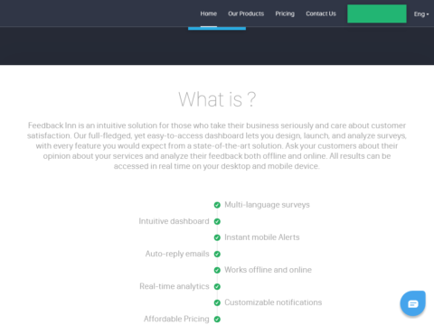 Feedback Inn is an intuitive solution for those who take their business seriously and care about customer satisfaction. Our full-fledged, yet easy-to-access dashboard lets you design, launch, and analyze surveys, with every feature you would expect from a state-of-the-art solution. Ask your customers about their opinion about your services and analyze their feedback both offline and online. All results can be accessed in real time on your desktop and mobile device.