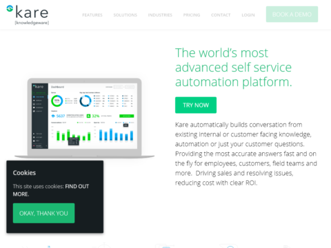 Kare automatically builds conversation from existing internal or customer facing knowledge, automation or just your customer questions. Providing the most accurate answers fast and on the fly for employees, customers, field teams and more.  Driving sales and resolving issues, reducing cost with clear ROI.