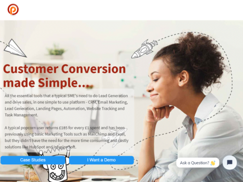Typically popcorn’s customers are SME’s who have been using entry level software like MailChimp and their data is all over the place, or they are frustrated using costly and complex tools like Hubspot – Leading them to become frustrated when they miss a sale or lose an opportunity.