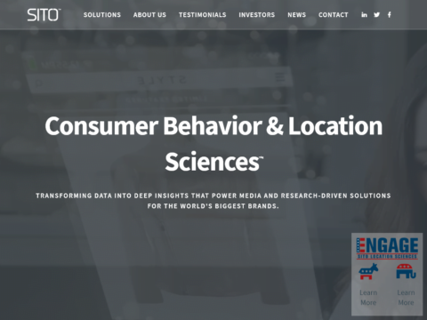 Through Consumer Behavior and Location Sciences™, SITO develops customized, data-driven solutions for brands spanning strategic insights and media. The platform reveals a deeper and more meaningful understanding of customer interests, actions and experiences providing increased clarity for clients when it comes to navigating business decisions. The company is home to the most complete, internally developed location-data technology stack in the market, offering a powerful resource for not only granular data, but also real-time insights and delivery of successful media campaigns. Using in-store targeting, proximity targeting, geo-conquesting and attribution data, the platform creates audience profiles to develop measurable hyper-targeted campaigns for brands. SITO’s real-time, location-based technology gives clients the unique advantage of understanding and shaping the future of retail and consumer behavior.