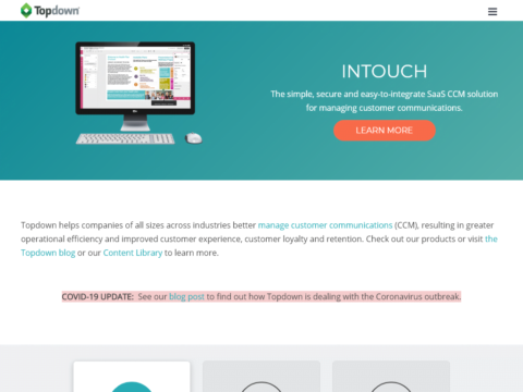 Topdown helps companies of all sizes across industries better manage customer communications (CCM), resulting in greater operational efficiency and improved customer experience, customer loyalty and retention. Check out our products or visit the Topdown blog or our Content Library to learn more.